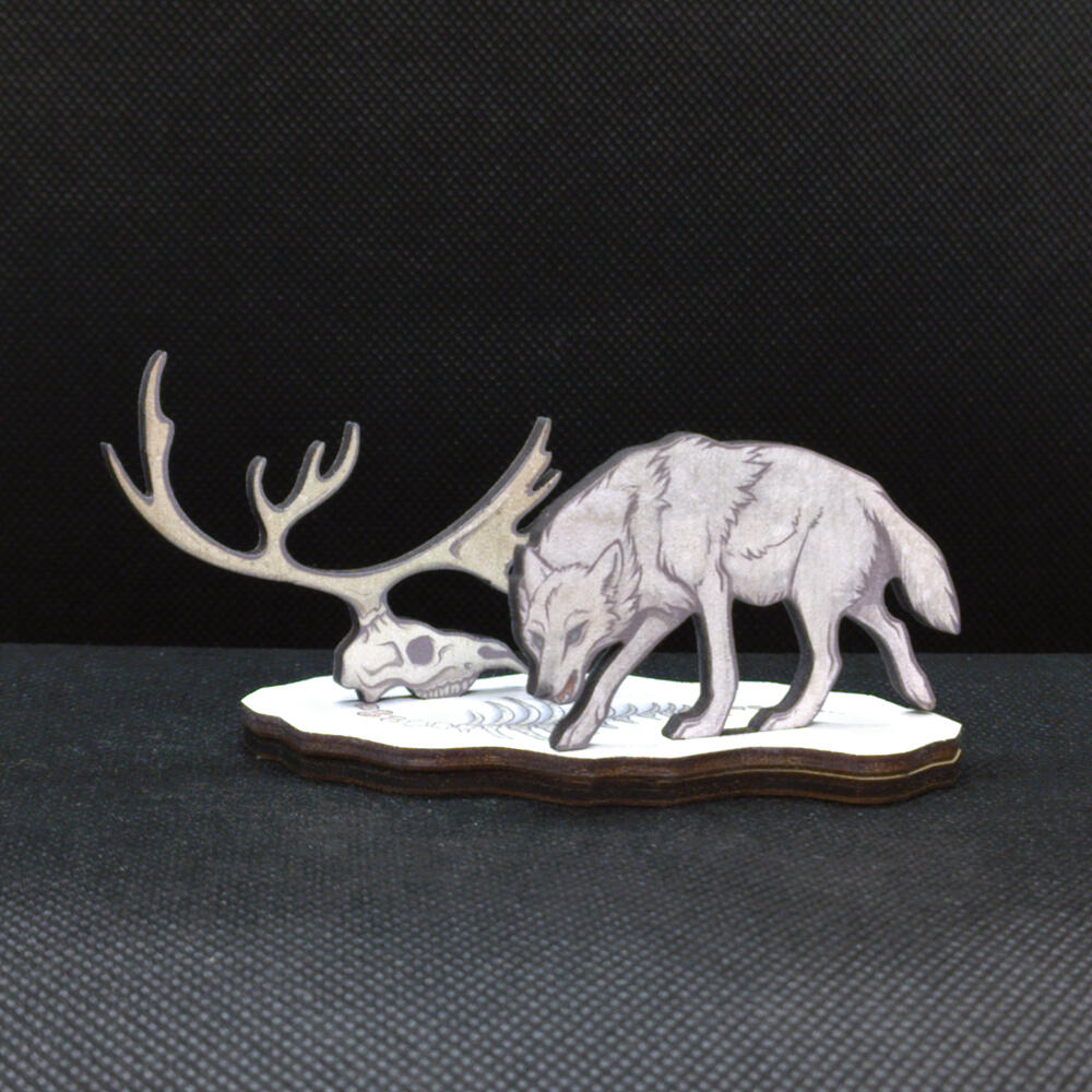 NEW! Designed by yours truly and produced entirely in the EU, these standees are sold in collectable boxes, each one containing 1 of 5 designs per each series. Each design features an animal familiar in a scene of ancient decay or ecological ruin. They measure ~7cm in width, height and are printed on wood. Each one is individually numbered, and collectors receive an invitation to a Discord server where they can collect and trade with others.